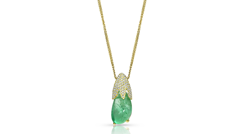 This M. Spalten Glacial necklace ($8,180), with a 10.49-carat emerald dripping from an 18-karat gold and diamond form, is perfect.