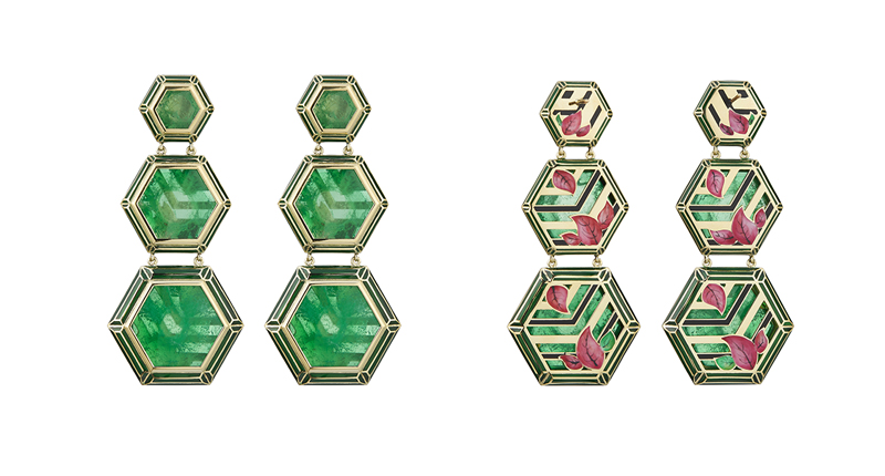 With the collaboration, it’s using organic material—tumbled, cabochon and trapiche emeralds, as well as slices—to fully showcase the diversity.