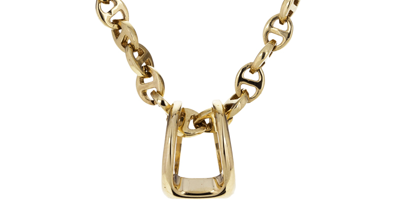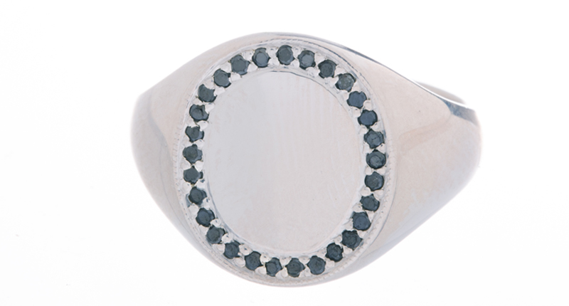 The style is best expressed through bold signet rings or pendant necklaces with a slight industrial feel, often in mixed metals, that give a “borrowed-from-the-boyfriend” feel to an outfit.