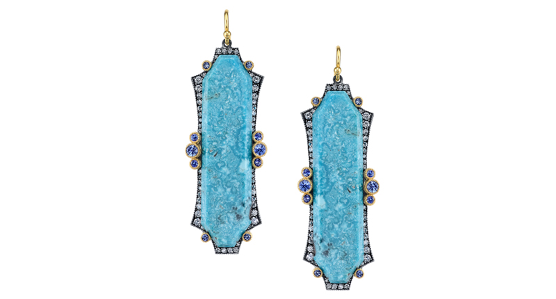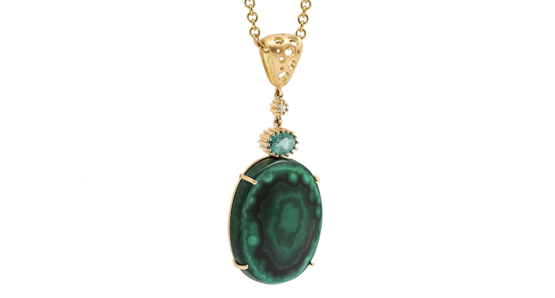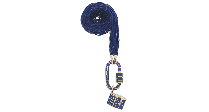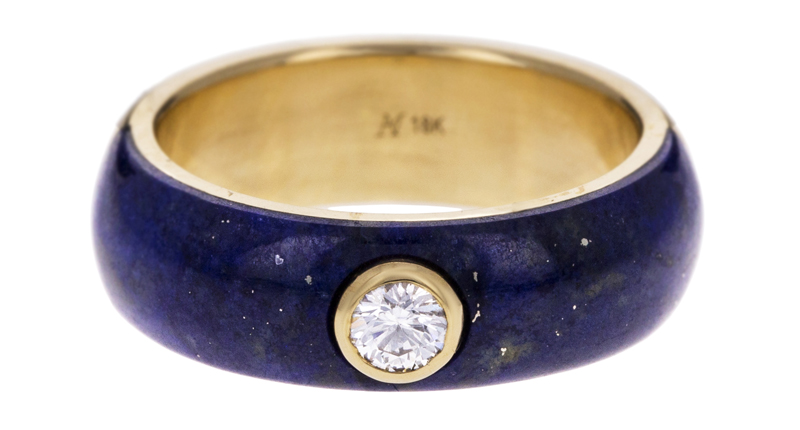 The ubiquity of enamel (that trend is still going strong, by the way) has paved the way for inlay, another way to create large swaths of dynamic color through relatively inexpensive stones like lapis lazuli, turquoise, mother-of-pearl, malachite and pink opal.