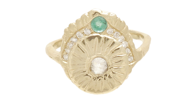 Noor Fares’ excellent Chakra collection debuted last year and is based on the premise of energy centers in the body, touted in Hinduism as well as many new-age spiritual practices. Communion by Joy hand-engraves her rings by channeling energy from a force she says is greater than she is.