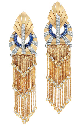 Fred Leighton, which is now owned by the Kwiat family, seeks to refashion Art Deco-era dress clips into modern, wearable pieces, such as these gold, sapphire and diamond fringe earrings.