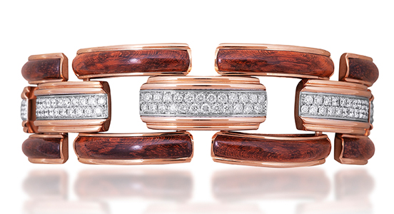 The limited-edition piece features naturally shaded snakewood, 18-karat rose and white gold, and 2.79 carats of round diamonds to create a sleek, classic, and oh-so-wearable design.