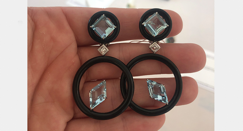 But I like these earrings a lot, especially the way they pair the black onyx—we’re seeing a lot of that and black enamel right now—with the light blue, and the way they partner the rounded shape of the onyx starkly against the geometric shapes of the faceted aquamarines, with the added intrigue of the bottom kites appearing to be almost floating. They’re modern and sleek, and I’d happily wear these to celebrate my birthstone.