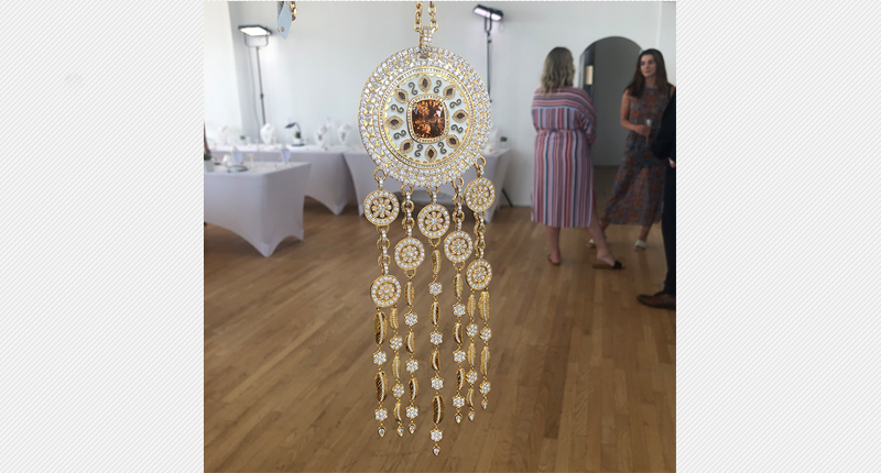 I am not a good sleeper. I need darkness and almost complete silence to fall asleep, and I will wake up at the sound of a pin dropping, all of which makes living in New York City an adventure. How nice then to find what might be my perfect solution at the AGTA Spectrum Awards! I love how much gold is involved in this, I love the zircon in the middle and I love how oversized it is. After all, who wouldn’t want to don such a lovely piece, especially if it meant a better night’s sleep?