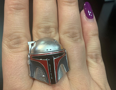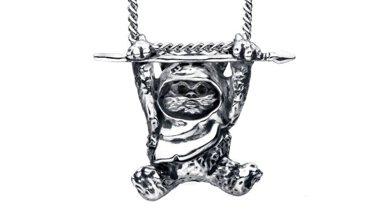 Boba Fett, a fierce bounty hunter, was brought to life, Mandalorian armor and all, in this sterling silver, hand-painted enamel ring. This Wicket the Ewok necklace made me smile as soon as I saw it. Something about his fuzzy little paws grasping that big spear tugged at my heart strings.