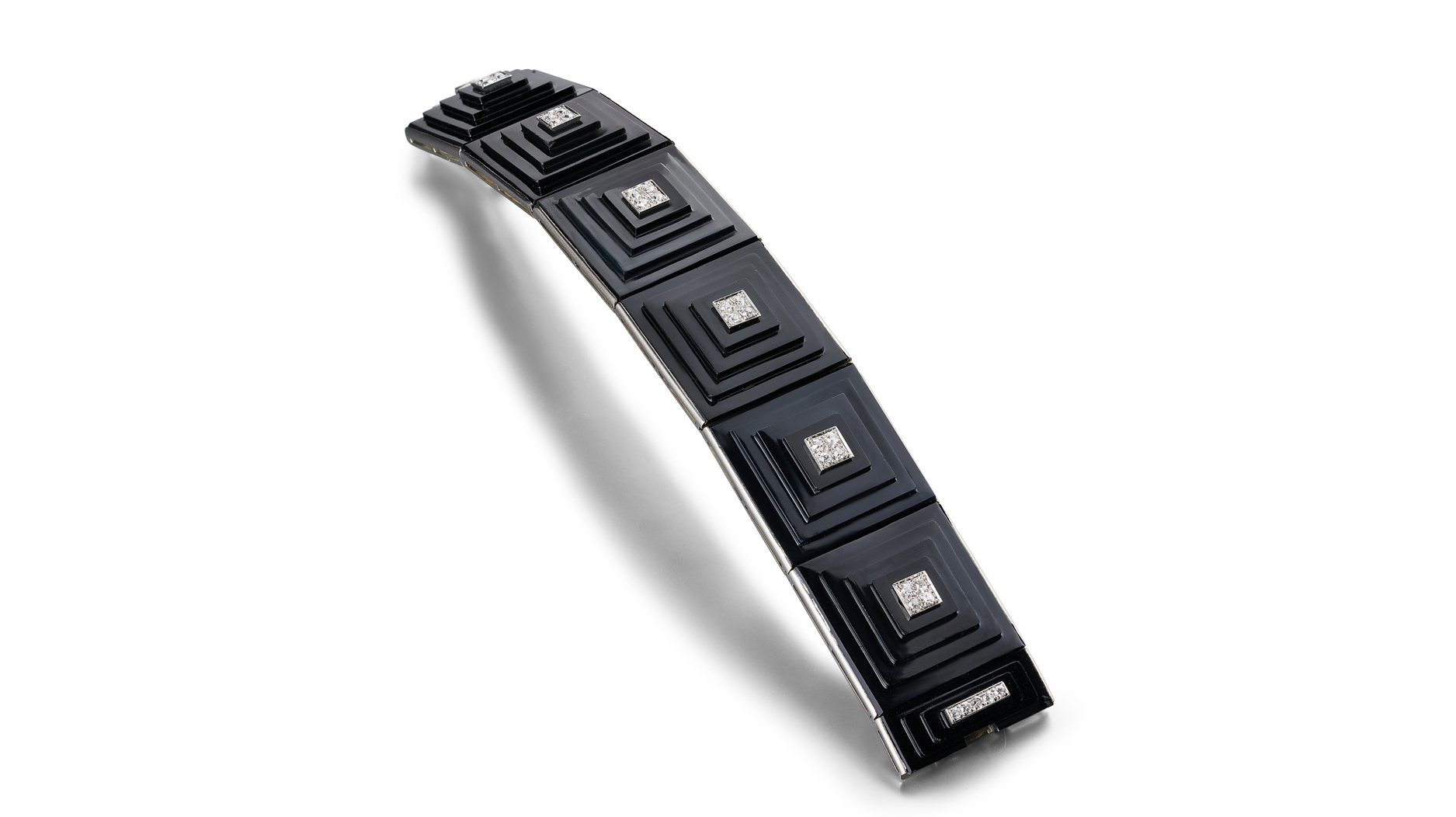Produced in 1929, the graphic piece is an excellent example of Art Deco style. Belperron, who was a top designer at Boivin from 1919 to 1932, created the piece when she was still in her 20s.