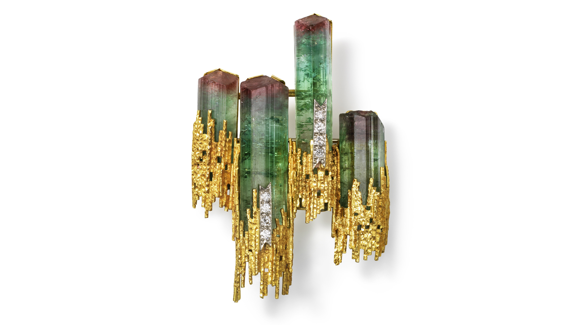 “The work was overwhelmingly large, primarily gold and incorporated some very unusual materials. It was a new day. The times were changing and art, fashion, jewelry, all responded.”